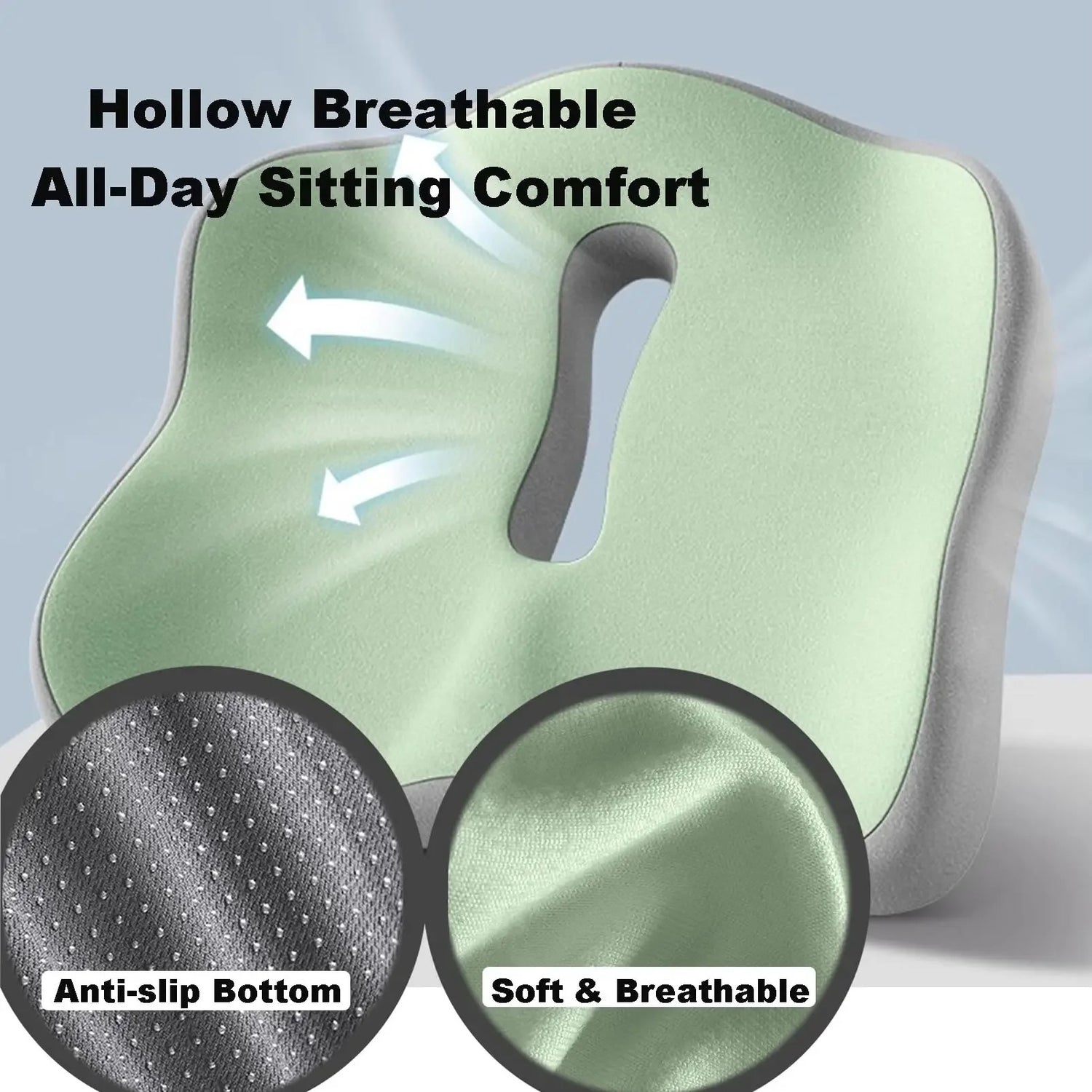 The innovative hollow suspension design releases pressure from your tailbone while allowing air to circulate freely under the cushion — keeping you cool, dry, and supported all day long.